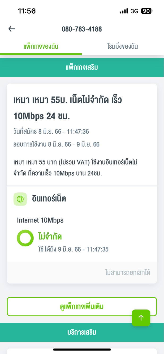 สมัคร เน็ตรายวัน 10 M ไป