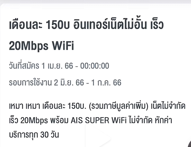 ช่วยแนะนำเน็ตรายเดือนAIS