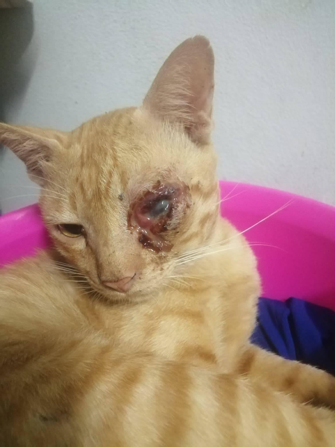 น้องแมวเป็นแผลใหญ่มาก รอบดวงตา และในดวงตา แบบนี้โดนอะไรคะ แล้วพอจะมีวิธีรักษาเบื้องต้นไหมคะ