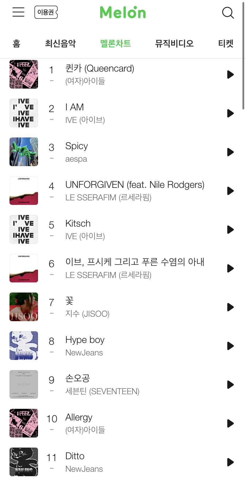 แต่ยังไงก้ยอม กำแพง GG เจน 4 เหนียวชห อันดับ 12 14 แคปไม่พอ แต่ก้เปน Fifty fifty - Cupid & OMG - NewJeans เจน 4 อยู่ดี และวงผู้ชายวงเดียว หงอคง Seventeen เหนียวมากมาย ไม่หล่นจากนี้เลย ผลัดกันขึ้นลงสลับเพลง วงไหนจะมาแทรกได้เนี๊ย