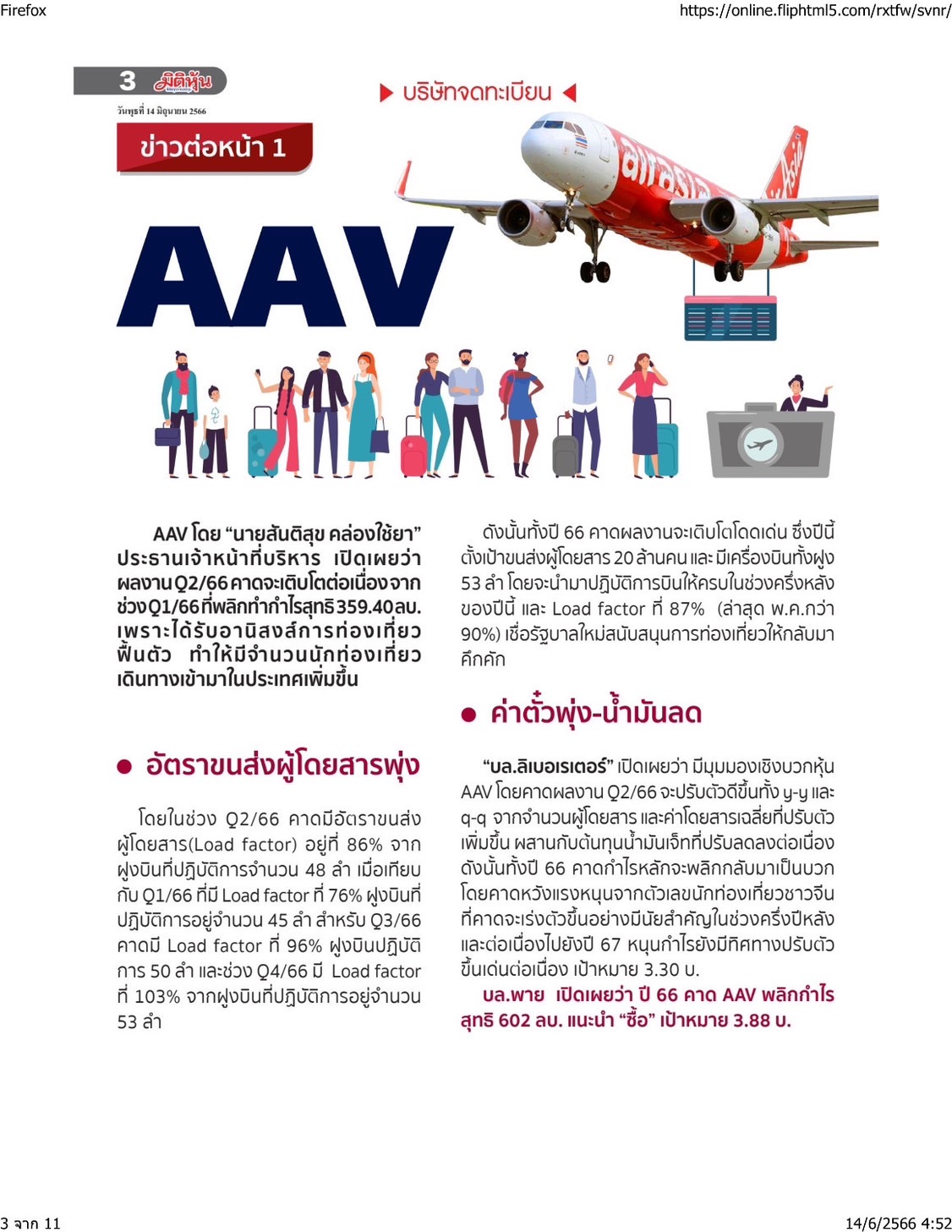 การลงทุนเช้านี้ วันที่ 14 มิถุนายน 2023