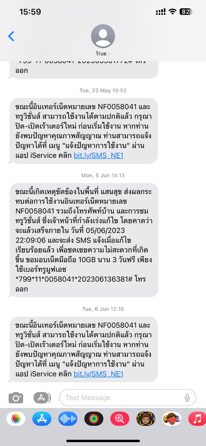 TRUE อินเทอร์เน็ตบ้าน (NF0058041) ส่งข้อความมาทั้งที่ไม่ได้ใช้ TRUE