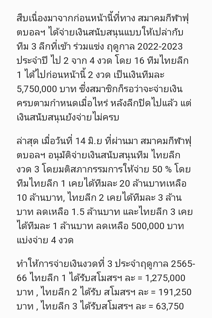 "สโมสรเริ่มใจสั่น" งวดสุดท้ายยังไม่มีกําหนดจ่าย