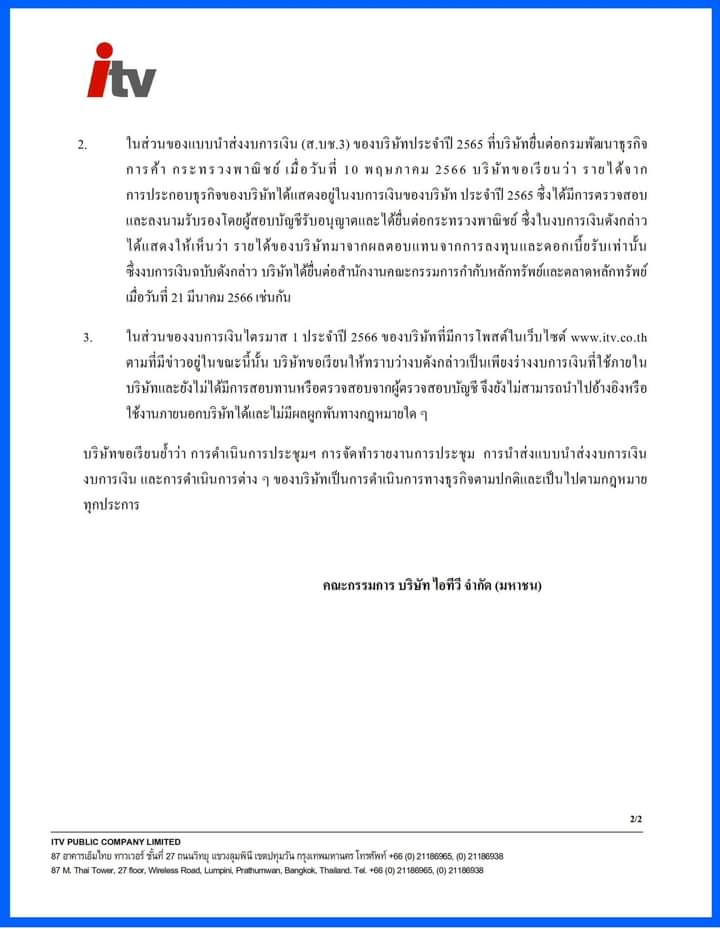 itv ยืนยันแล้ว ว่าไม่มีรายได้ตรงจากการทำสื่อ