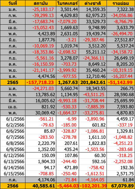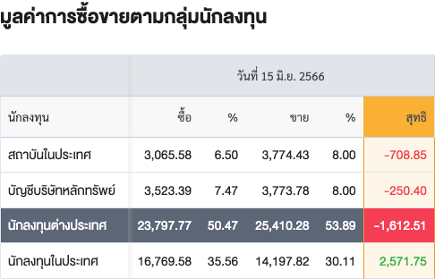 Sinthorn Summary 15/6/2566 : ต่างชาติขายสุทธิ -1,612.51 ลบ.