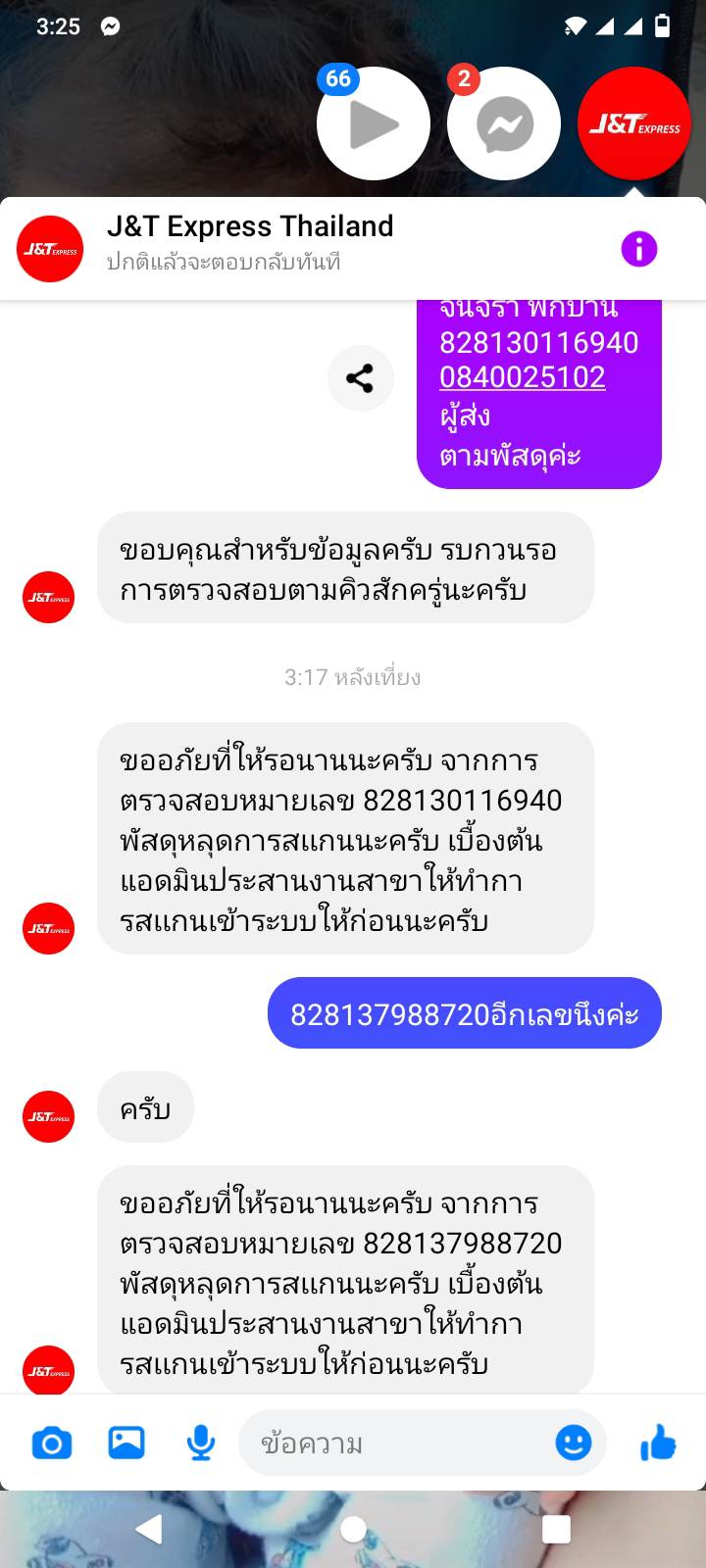 เนื่อจสกว่าผมได้ใช้บริการขนส่งJ&T ส่งเอกสารจากอยุธยา มาให้ญาติที่กรุงเทพ ซึ้งจริงๆปกติควรจะถึงภายใน2วัน แต่พอเข้าไปเช็คสถานะพัสดุตามกำหนดพัสดุตามกำหนด จริงๆพัสดุถึงสาขากรุงเทพแล้ว แต่อยู่อีกช่วบเว