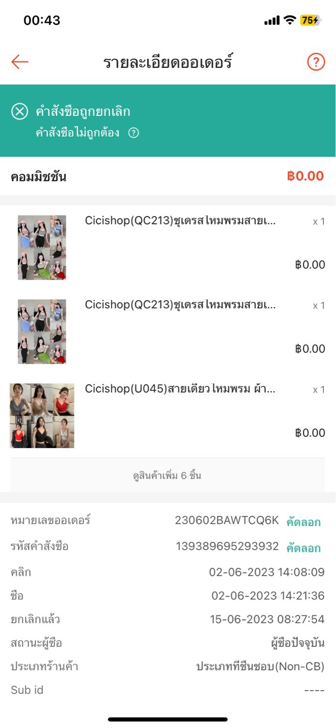 คำสั่งซื้อมันขึ้นมาว่า “คำสั่งซื้อถูกยกเลิก”