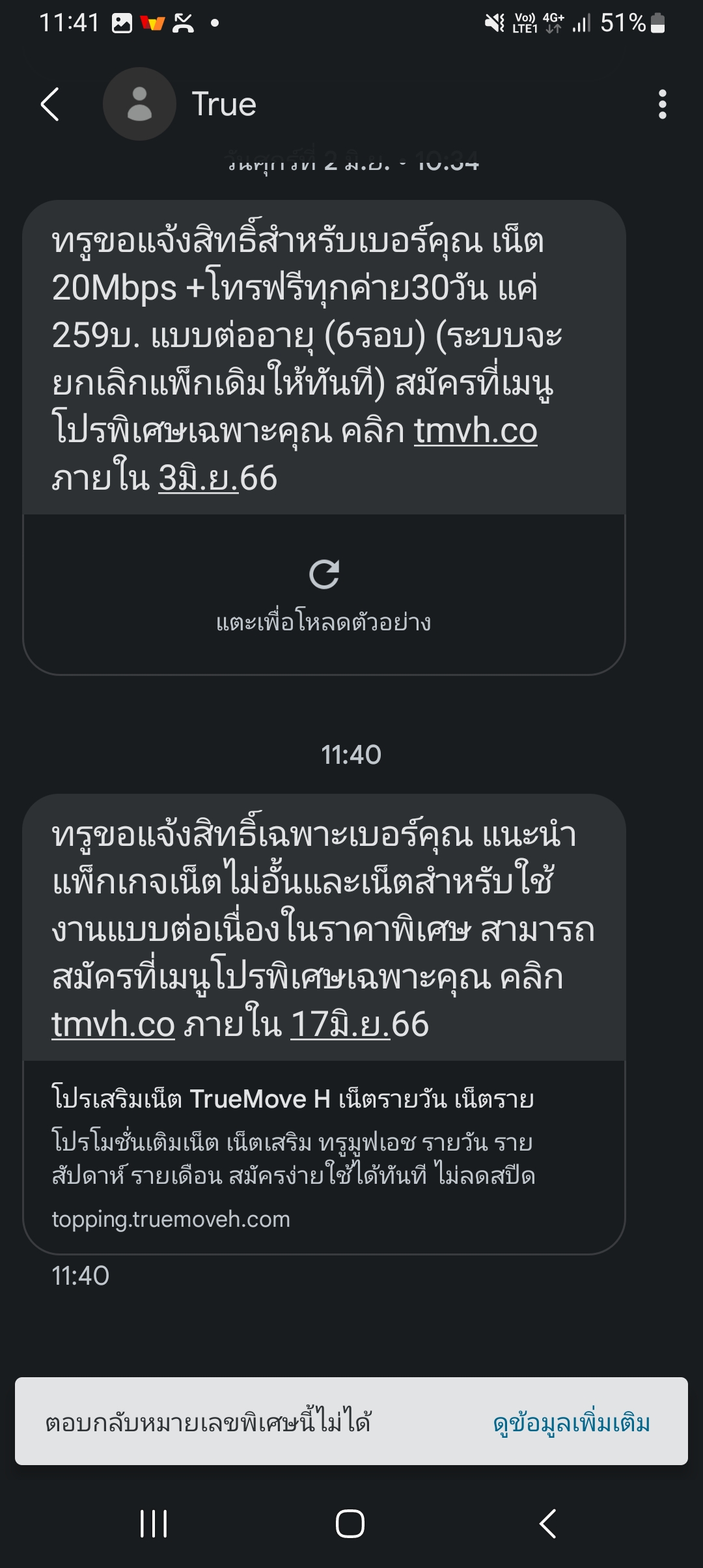 ขอถาม ทรูมูฟ หน่อย ส่ง sms มาเพื่ออะไร