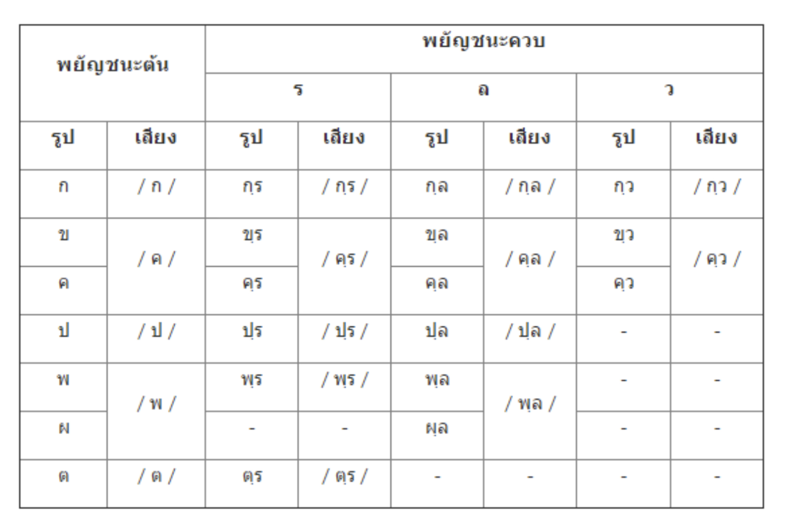 จะเห็นว่าไม่มีเสียง /ดร/ อยู่ในตาราง มีแต่ /ตร/ (ต เต่า)