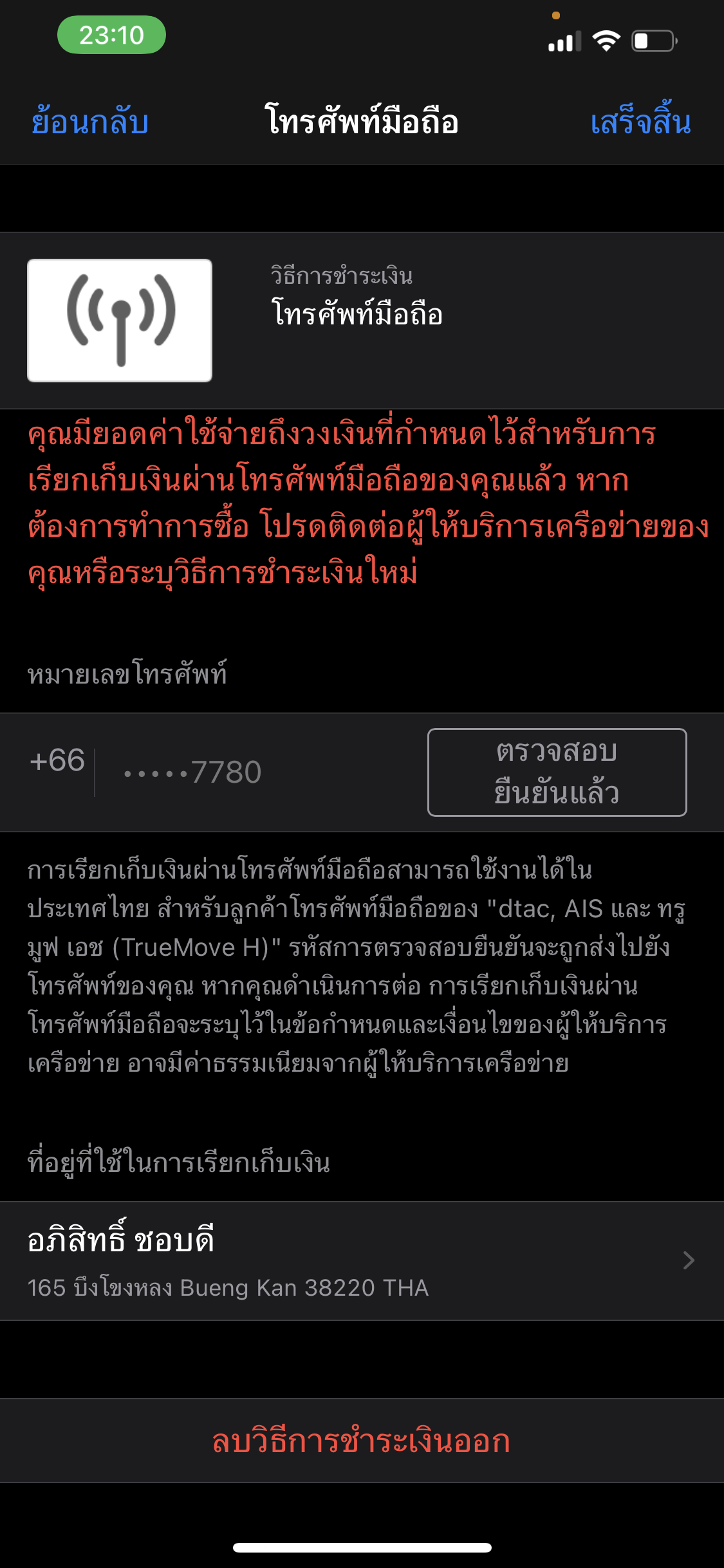 เพิ่มการชำระเงินไม่ได้ ทั้งทีไม่มีการค้างค่าขำระ