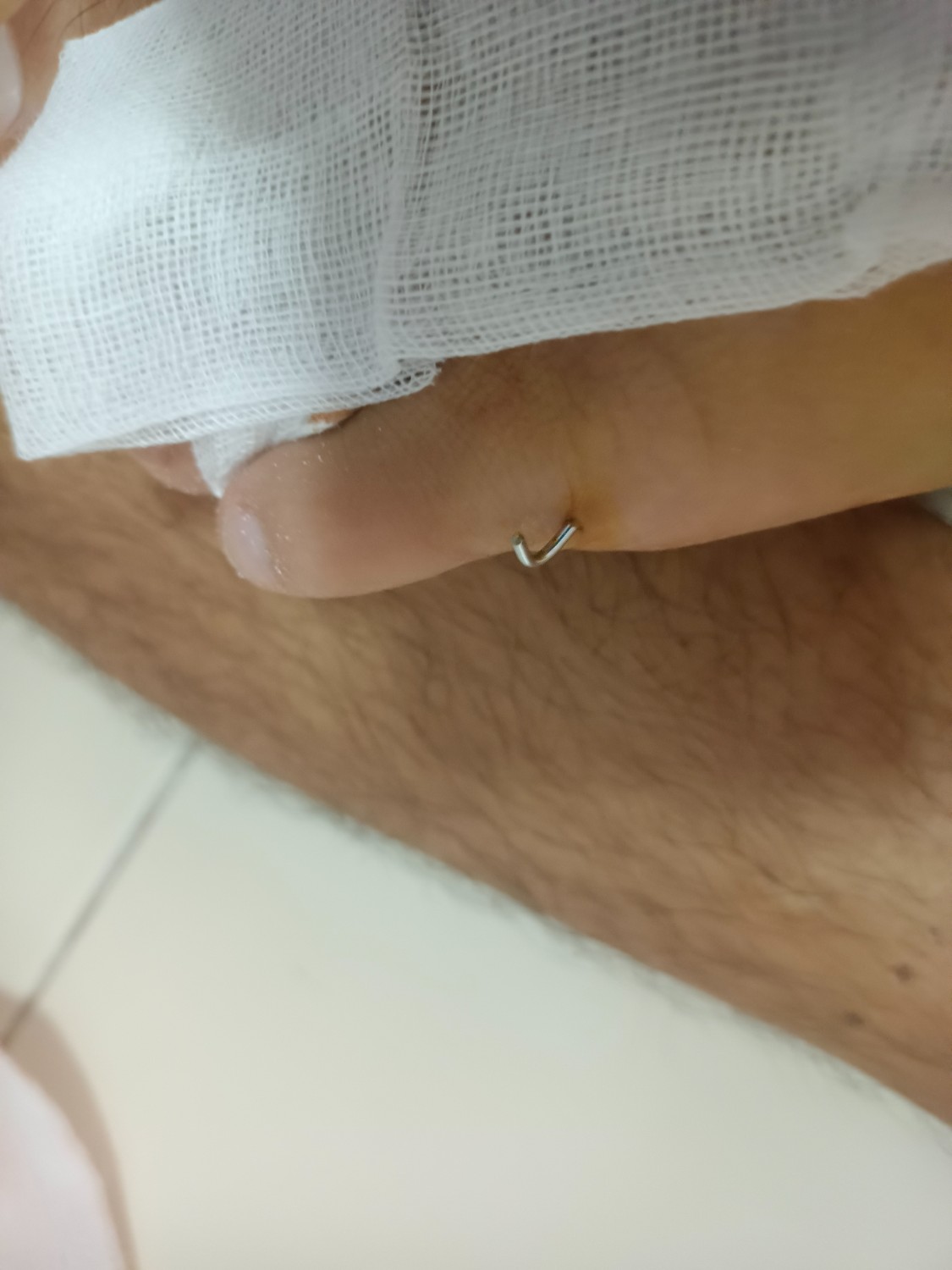 เมื่อวันที่ 4 มิถุนา ที่ผ่านมาผมประสบอุบัติเหตุรถขับข้ามเลนส์มาชนผม ทำให้กระดูกเท้าซ้ายที่เชื่อมกับนิ้วกลาง นิ้วนางและนิ้วก้อย หักทั้งหมด จึงต้องผ่าตัดใส่เหล็กเข้าไปในเท้า หลังจากออกจากโรงพยาบาลและกลับมาใช้ชีวิตที่บ้านได้ประมาณ 2 อาทิตย์ ผมเตะเข้ากับของในบ้านทำให้เหล็กที่อยู่ด้านนอกของเท้าตามรูป เคลื่อนที่จากครั้งแรกที่เห็นเหมือนจะเคลื่อนไปข้างบนนิดนึง อยากจะถามผู้รู้ว่า ตัวเหล็กกระดูกด้านในจะมีปัญหาอะไรไหมหรือว่าต้องไปพบแพทย์ที่เป็นเจ้าของเคสหรือเปล่า