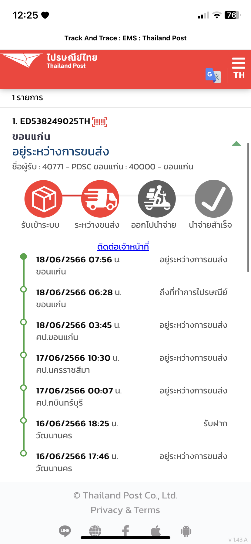 ของถึงปลายทางตั้งแต่เช้าเมื่อวาน วันนียังไม่มีวี่แวว