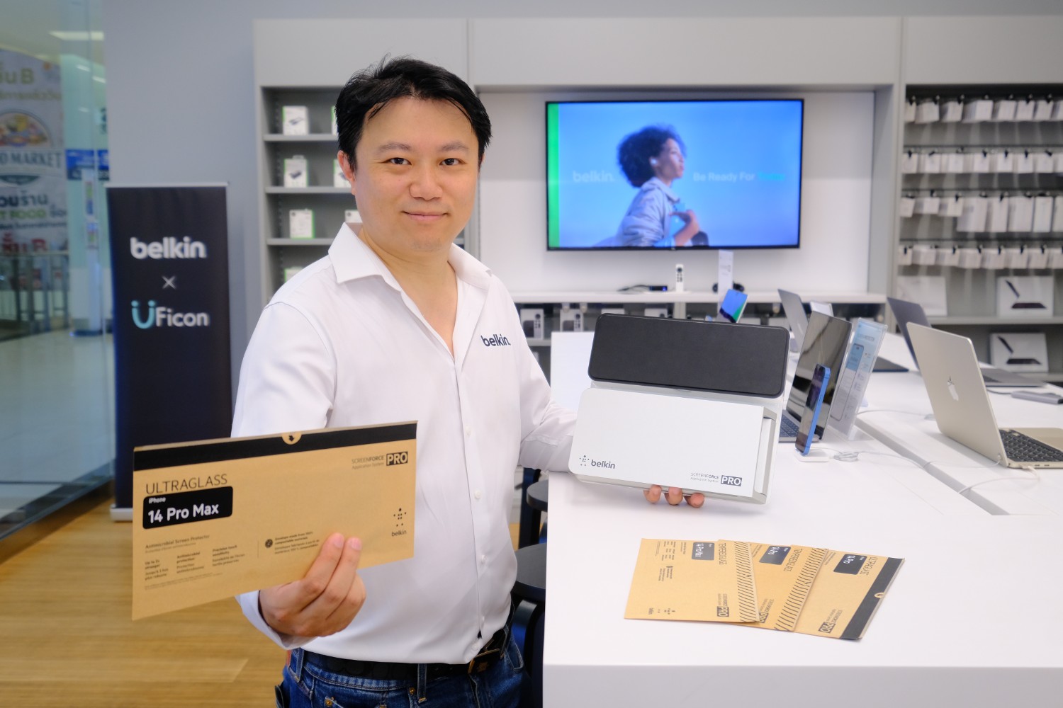 Belkin, (เบลคิน) ผู้นำระดับโลกด้านผลิตภัณฑ์อิเล็กทรอนิกส์เพื่อผู้บริโภค เปิดประสบการณ์ใหม่ให้แก่สาวก Apple ในไทย ด้วยความร่วมมือกับ UFicon ตัวแทนจำหน่ายระดับ Apple Premium Reseller (APR) เปิดให้บริการ "เครื่องติดฟิลม์อัจฉริยะ (Belkin ScreenForce™ PRO Application System)" พร้อมปรับพื้นที่ใหม่เพื่อนำเสนออุปกรณ์เสริมคุณภาพแบรนด์ Belkin แบบครบทุกกลุ่มผลิตภัณฑ์ของ Apple เป็นแห่งแรกในเมืองไทยที่ iStudio by UFicon ชั้น 2 ศูนย์การค้าแฟชั่นไอส์แลนด์