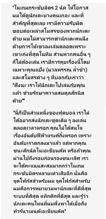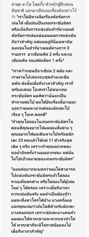 กราบเรียนแฟนฟุตบอลไทยที่เคารพรักทุกท่าน วันนี้แป้งอยากจะออกมาพูดถึงเหตุการณ์การยกเลิกสัญญา (อย่างถูกต้องตามสิทธิ์ของผู้ว่าจ้าง และสามารถกระทำได้ตามกฎหมาย) กับโค้ช มาซาทาดะ อิชิอิ หัวหน้าผู้ฝึกสอนทีมชา