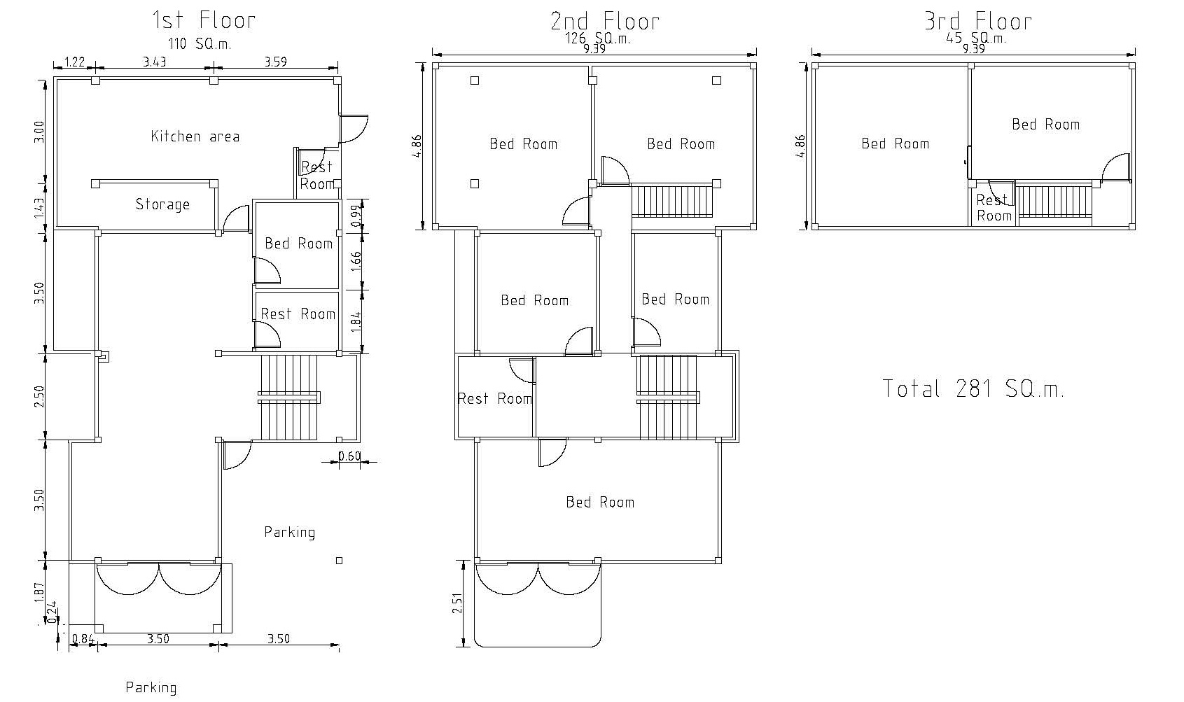 พื้นที่ใช้สอย 281 ตร.ม. (เฉพาะตัวอาคารหลักและอาคารที่ต่อเติมด้านหลัง)
