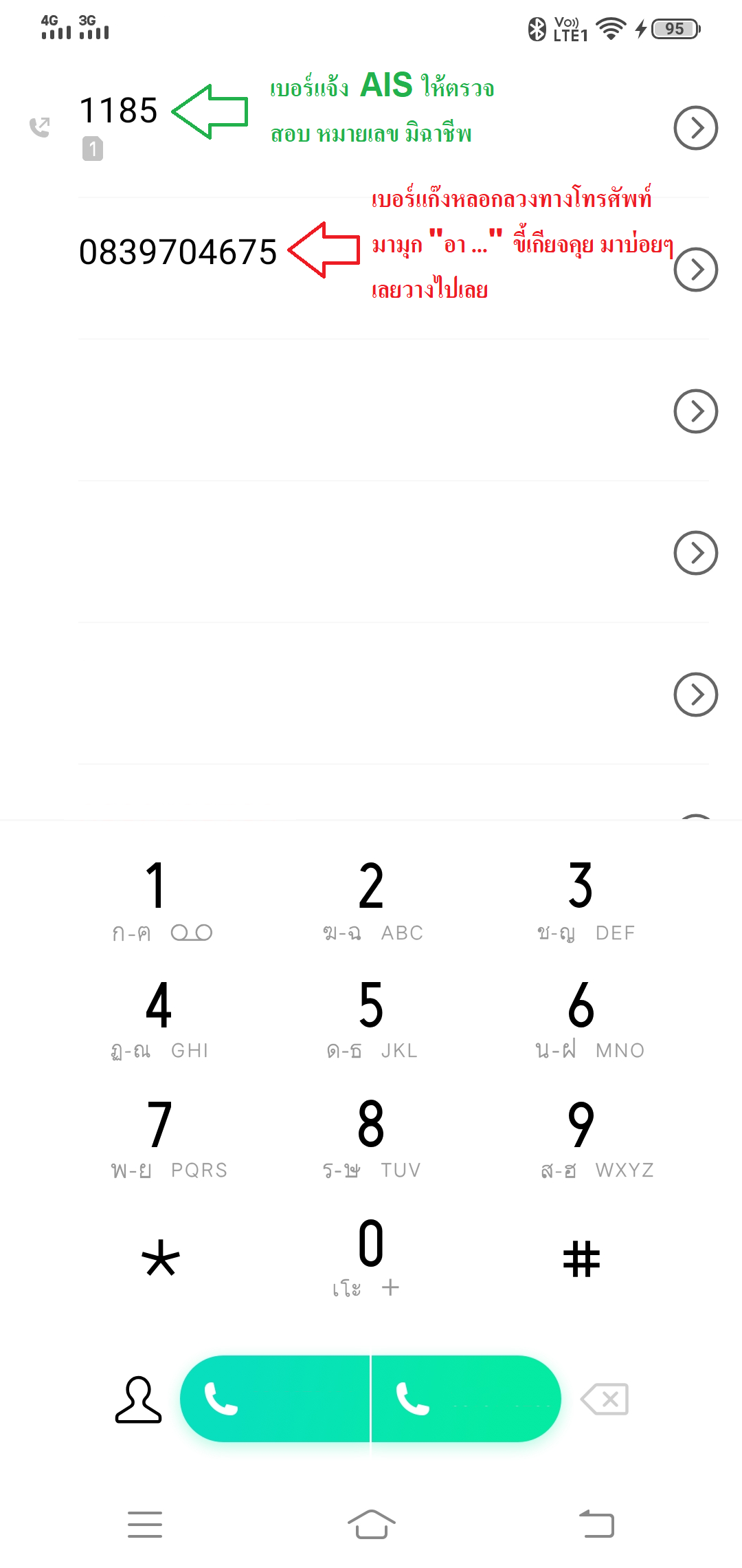 พวกหลอกลวงทางโทรศัพท์ เริ่มกลับมาอีกแล้ว มุกเดิมๆ ทำเหมือนรู้จัก ถามว่าใคร ไม่ตอบ ทักว่าพวกแก๊ง ทำงง แจ้ง *1185# ไปแล้ว พอดี ผมใช้ AIS หนะครับ รบกวนด้วยครับ ผมคิดเอาเองว่า มาจาก ไปให้หมอดูเบอร์โทร ใน