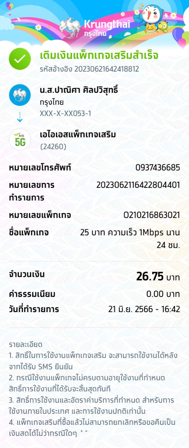 สมัครเน็ตรายสันผ่านแอปกรุงไทย หักเงินในบัญชีแล้ว แต่ไม่มีsmsยืนยัน เน็ตก็เล่นไม่ได้