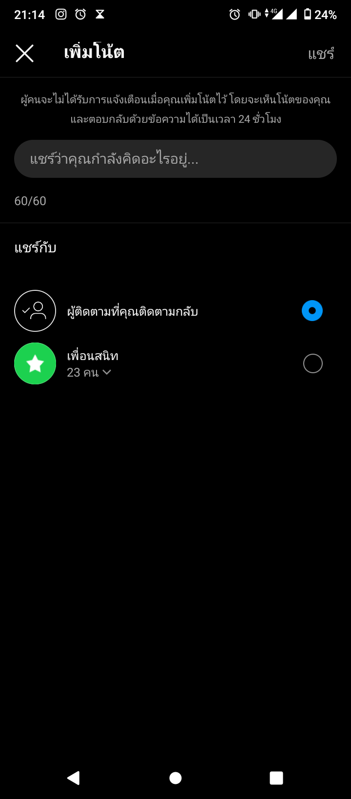 ตั้งเพลงในโน๊ตไอจีไม่ได้อ่า
