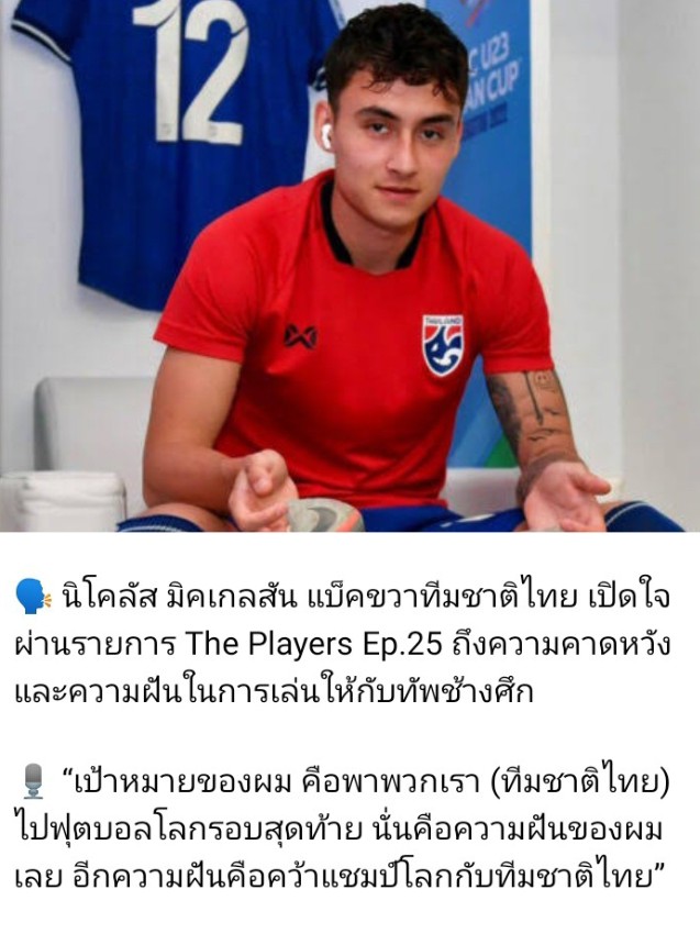 มิคเกลสัน " ความฝันผมคือ พาไทยไปบอลโลก และคว้าแชมป์บอลโลกกับทีมชาติไทย"
