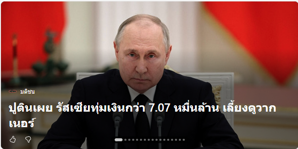 https://www.youtube.com/watch?v=0OAUy-JA27s “ปูติน” ยกหนี้ให้ทหารไปรบยูเครน รัสเซียยึดดินแดนคืนได้แล้ว ร้อยละ 40 | TNN ข่าวเที่ยง | 24-11-67