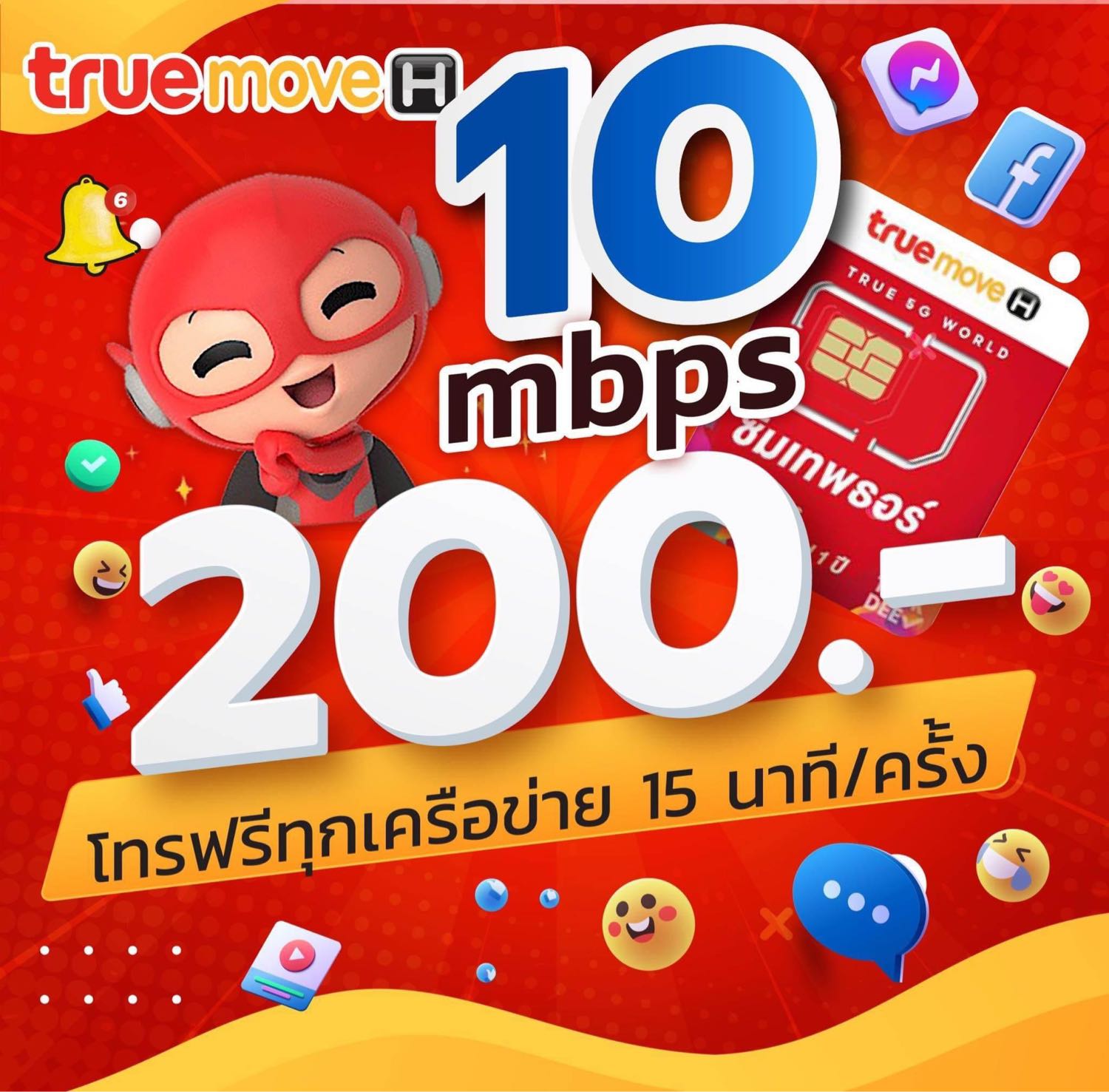เน็ตไม่อั้น 6Mbps + TrueID HD ไม่จำกัด พร้อมโทรในเครือข่าย และ WiFi นาน 1ปี, ราคา 1,290 บาท (รวมภาษีมูลค่าเพิ่ม), ใช้งานได้ 30 วัน/รอบ (รวม 12 รอบ), รับสิทธิ์โทรทุกเครือข่าย 100 นาที/เดือน (นาน 12 รอบ