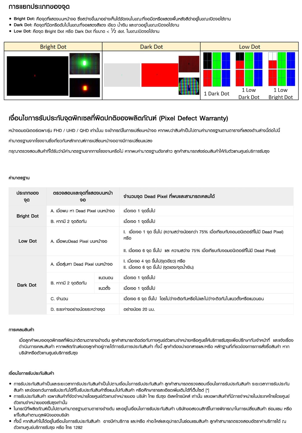 https://www.samsung.com/th/support/tv-audio-video/samsung-monitor-screen-warranty-guidelines/) กลับระบุว่าหากมี Dead dot เรียงกันมากกว่า 1+ จุดก็เคลมได้แล้ว ผมจึงอยากขอความเห็นว่า กรณีนี้ผมโดนบริการของ Samsung เล่นงานไหมครับ