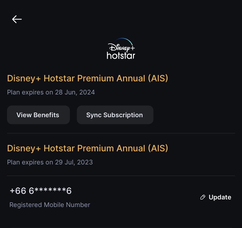 ล่าสุดมีกรณี ..... ผมได้มีการสมัคร internet กับ AIS แบบเหมาราย ปี เมื่อ 2 ปีก่อน เป็นโปรแถมดู Disney+ Hotstar ฟรี ..... ปีที่แล้วโปรหมด ได้ทำการเติมเงิน ต่อเหมือนเดิม แต่ไม่มีดู Disney+ Hotstar ฟรี