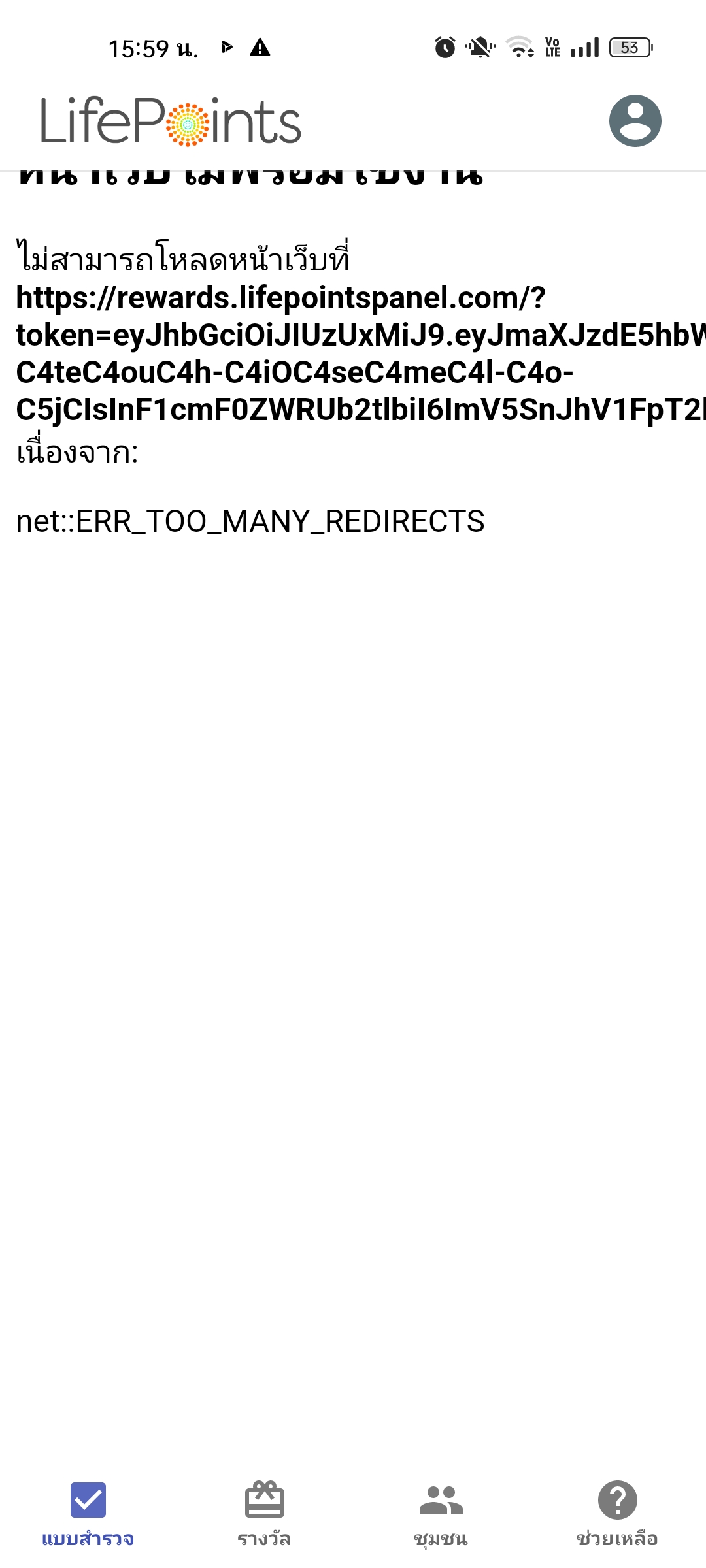 Lifepoints ใครแลกคะแนนไม่ได้บ้าง?มันขึ้นว่าหน้าเว็บไม่พร้อมใช้งาน