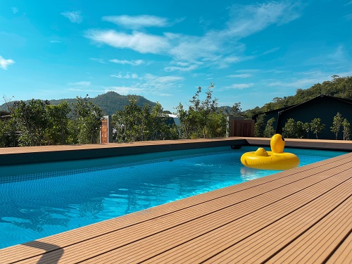 งานระเบียงรอบสระ : แบบตั้งพื้น ปูพื้นด้วยไม้เทียม