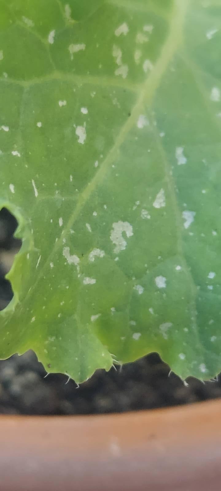 เพิ่งเริ่มปลูกผักเคลได้ประมาณ 1 เดือน เจอใบผักเคลเป็นแบบนี้ เกิดจากอะไรคะ แล้วมีวิธีแก้ไหมคะ ช่วยแนะนำหน่อยนะคะ มือใหม่ค่ะ ขอบคุณค่ะ