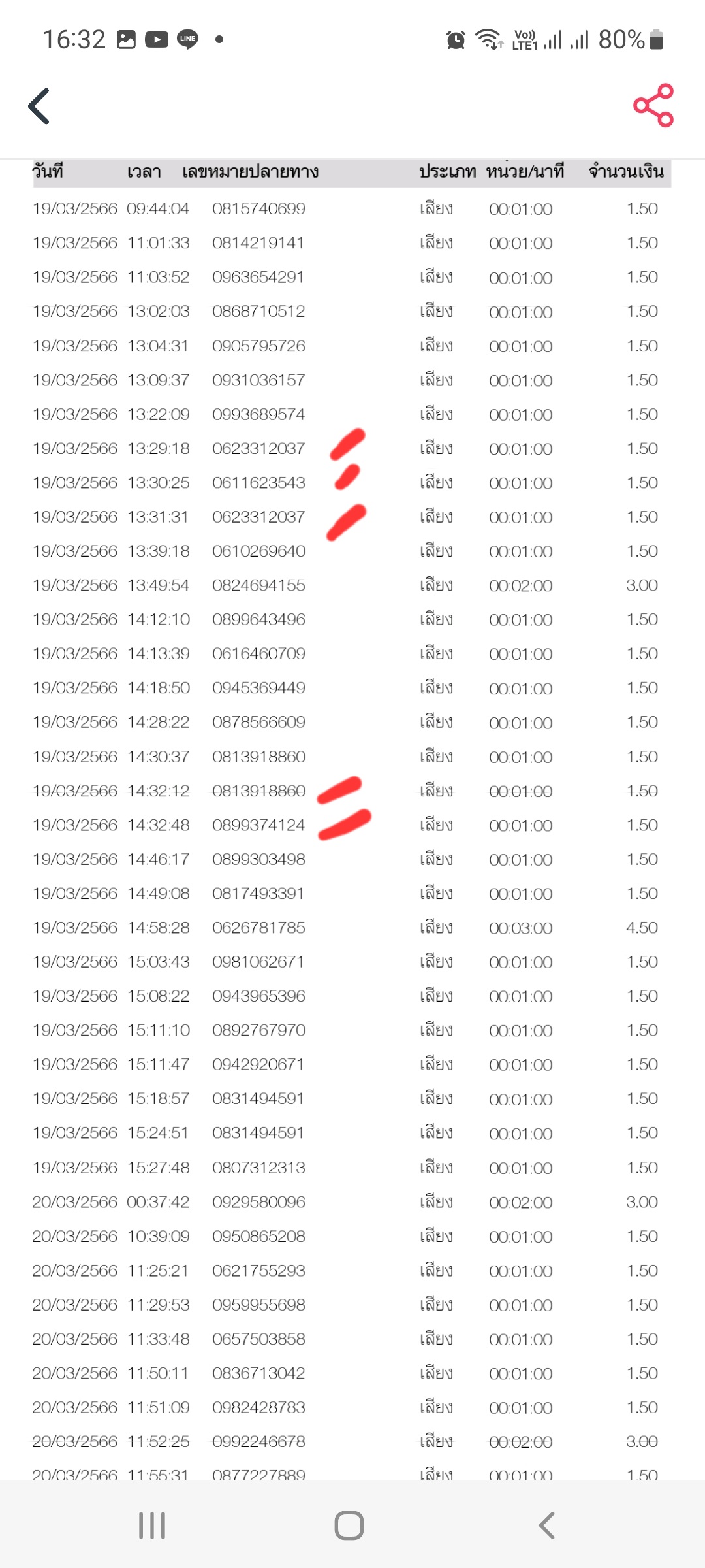 ตัวอย่างการโทร ถามว่ามีใครสามารถโทรแบบนี้ได้บ้าง สังเกตว่า มันจะโทรครั้งละ 1 นาที นาทีละ 1.50 บาท