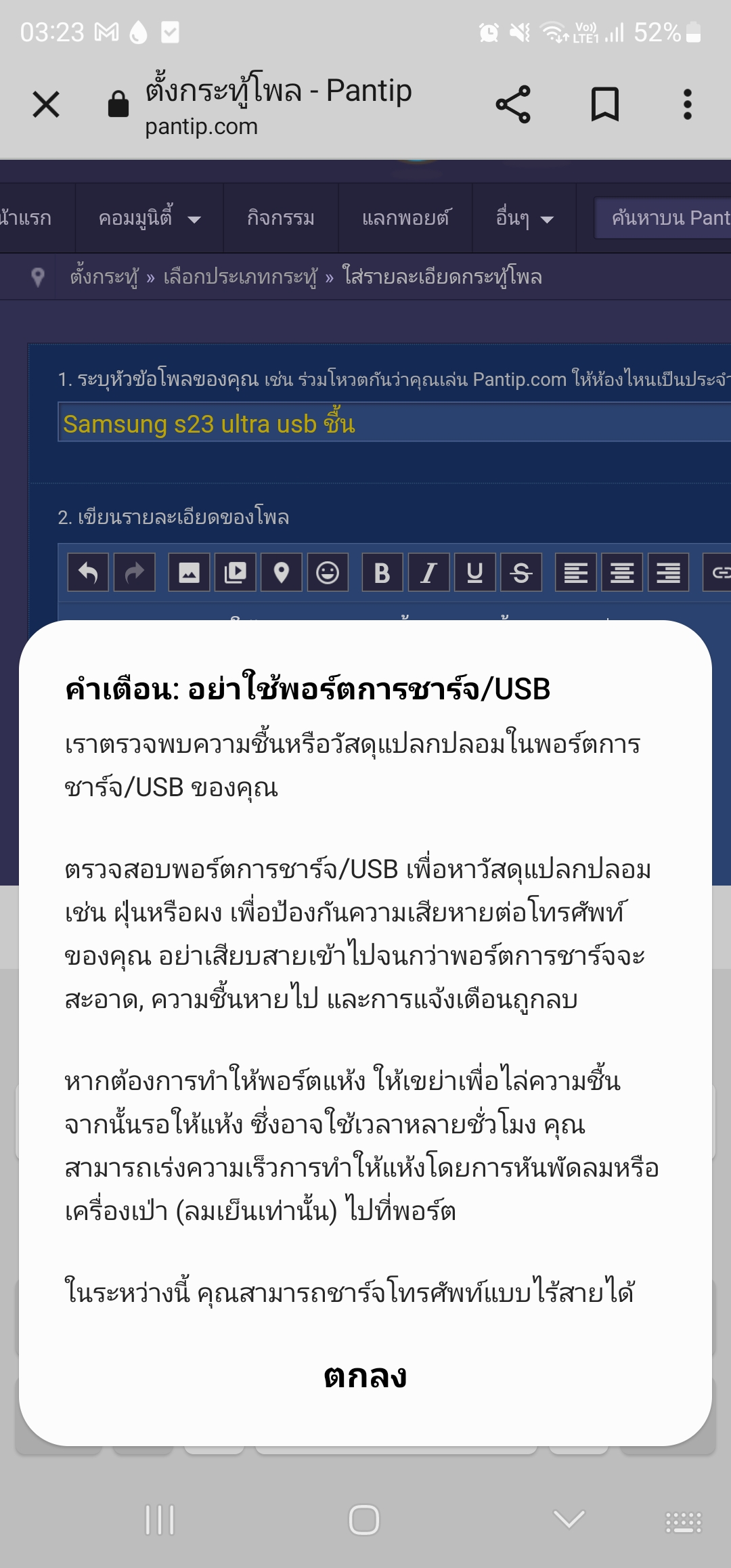 Samsung s23 ultra usb ชื้น