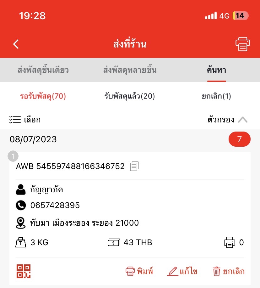 เช็คเลขไปรษณีย์ไทย เเล้วขึ้นไม่พบข้อมูล