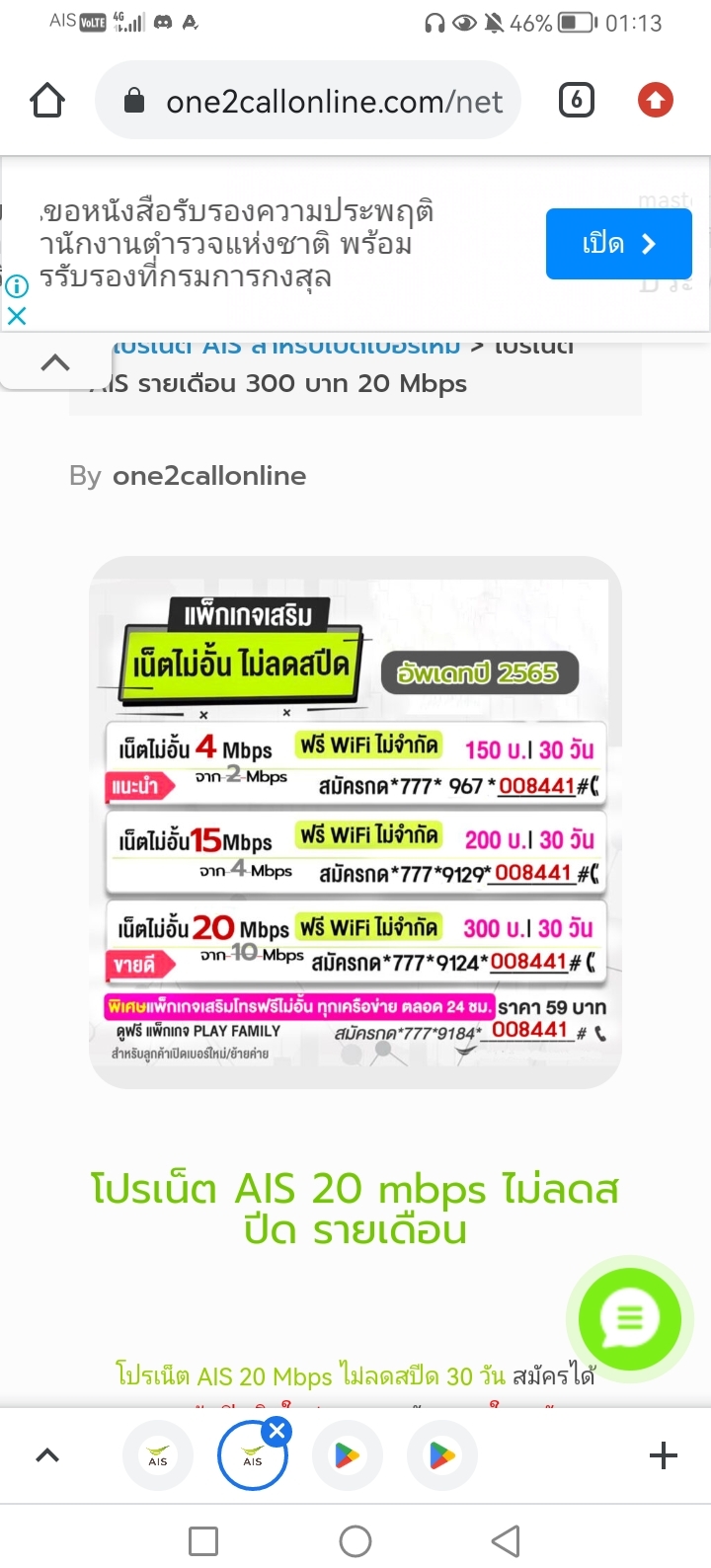 เน็ต AIS *788*4326#. ขอรายละเอียดเพิ่มเติม