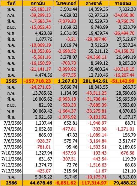Sinthorn Summary 13/7/2566 : ต่างชาติขายสุทธิ -11.67 ลบ.