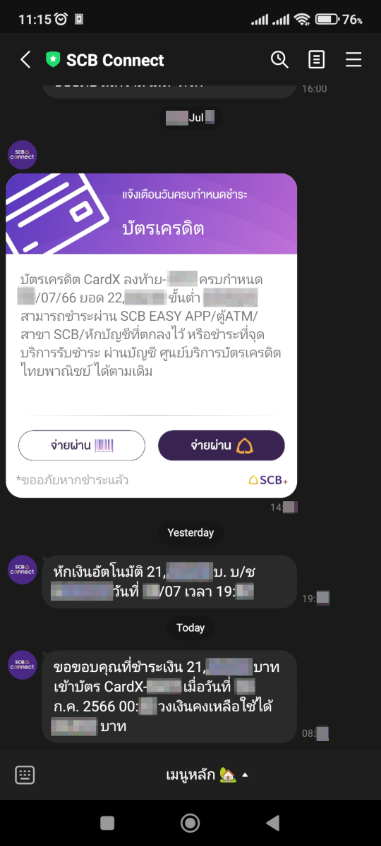 SCB/CardX ปรับการแจ้งยอดบัตรเครดิตหน่อย แจ้งแบบนี้ทำให้ดูเหมือนจ่ายไม่ครบ