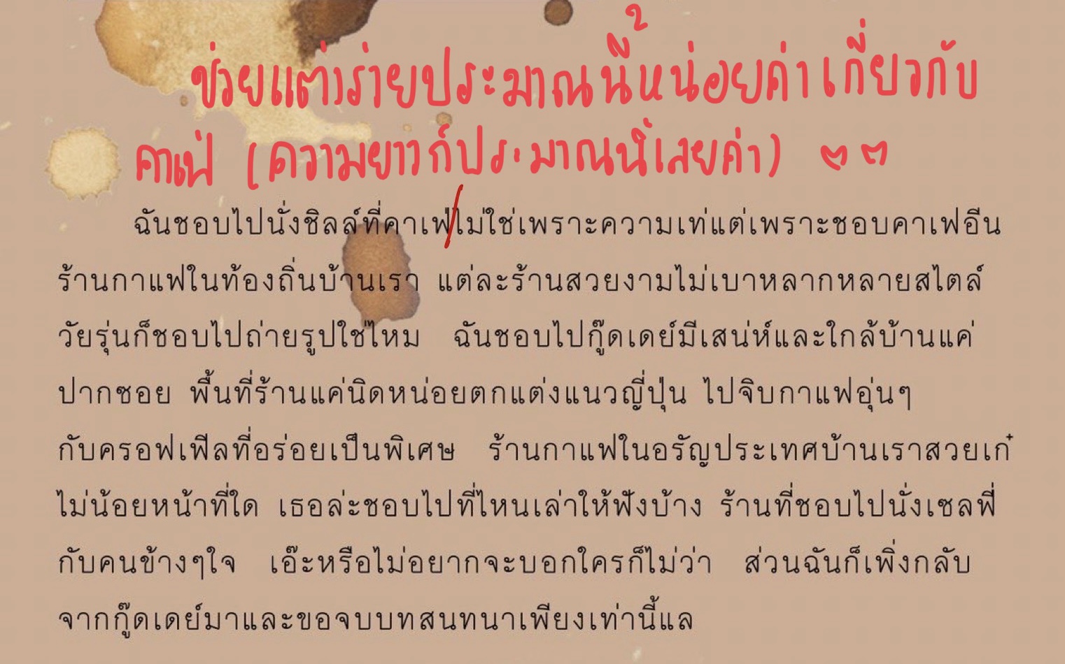 ช่วยแต่งร่ายหน่อยค่ะ คิดไม่ออกเลยจริงๆค่ะ ร่ายเกี่ยวกับคาเฟ่ ประมาณนี้เลยค่ะ🥺🥺🙏🏻🙏🏻