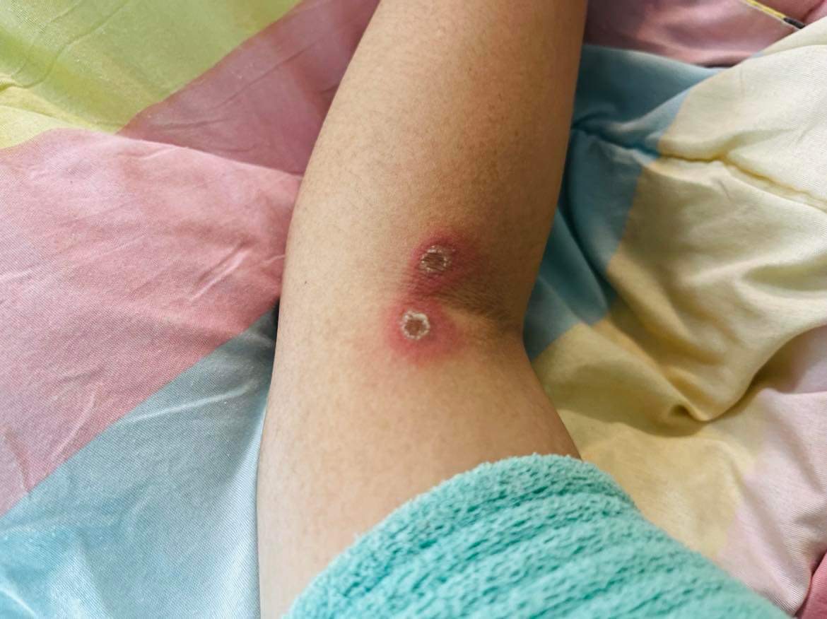 สวัสดีครับเพื่อนๆ ผมชื่อเคน เเฟนผมอยู่ดีก็มีเเผลที่ข้อพับเเขน เหมือนถูกเเมลงกัด หรือ เป็นอะไรสักอย่าง