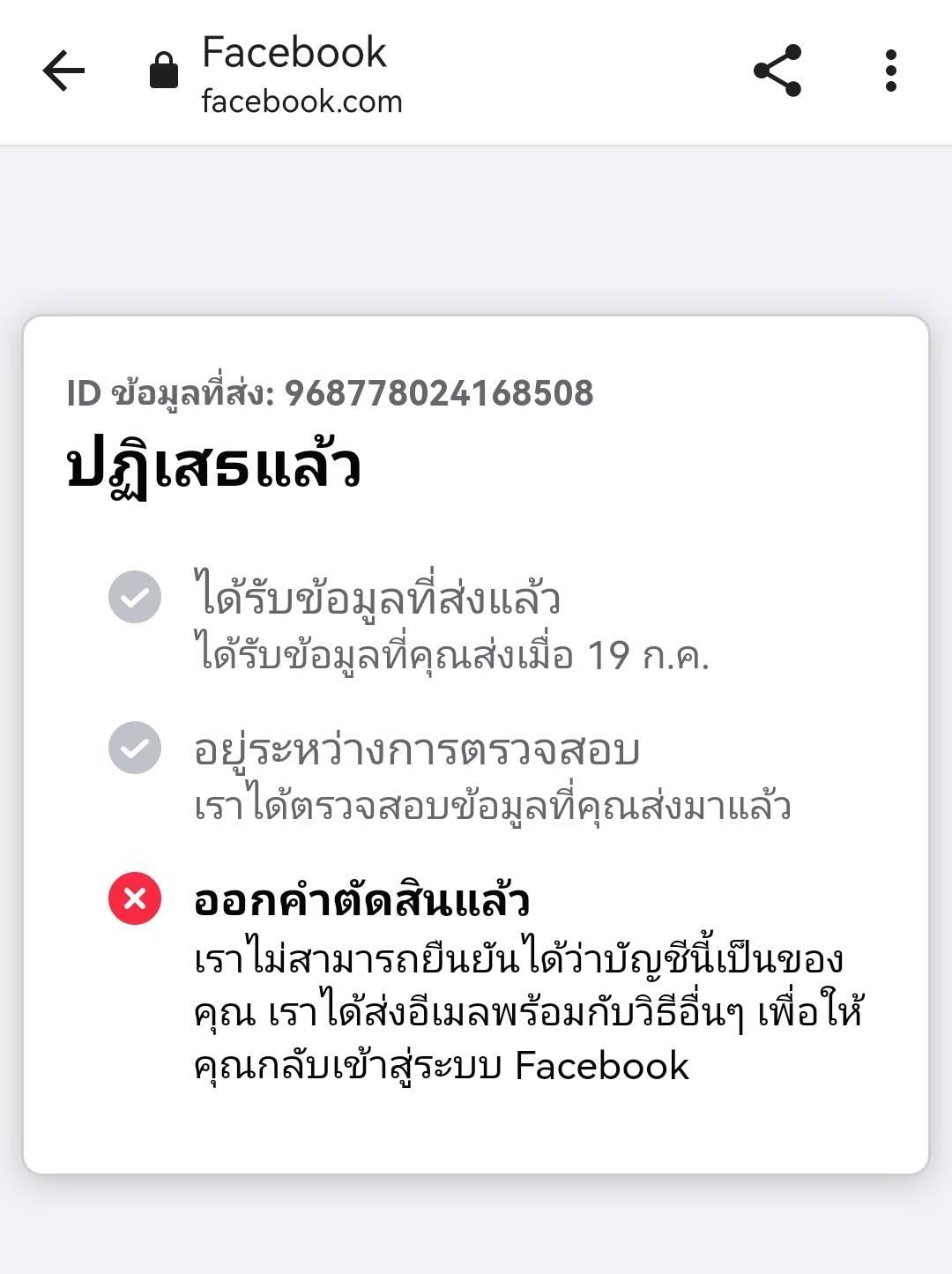 Face โดนแฮ็กเปลี่ยน mail, เบอร์โทร หาทางแจ้งส่งเอกสารยืนยันได้แล้ว แต่เค้าตอบกลับมาแบบนี้ครับ