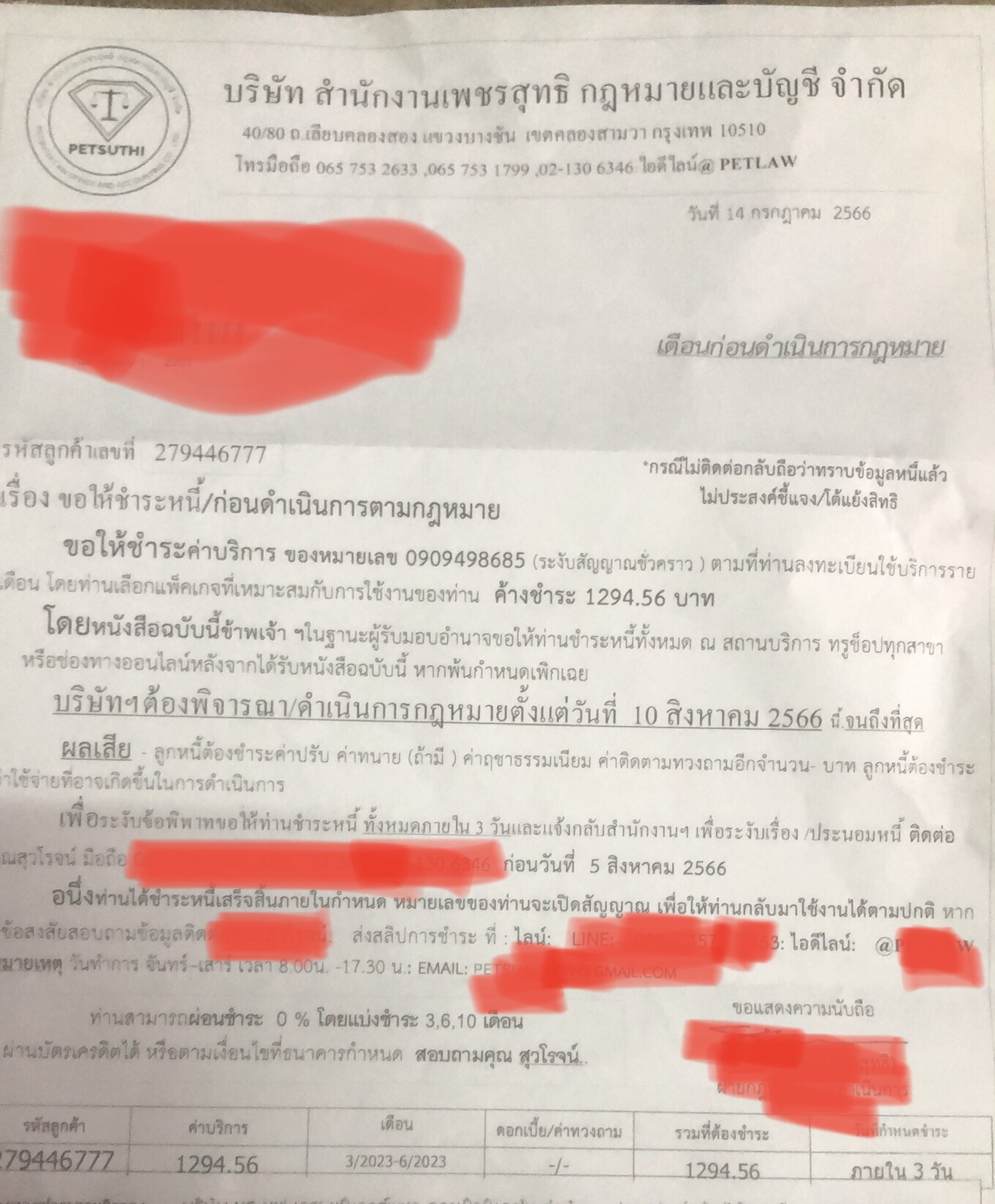 เป็นหนี้ทั้งๆที่ไม่ได้ใช้เบอร์