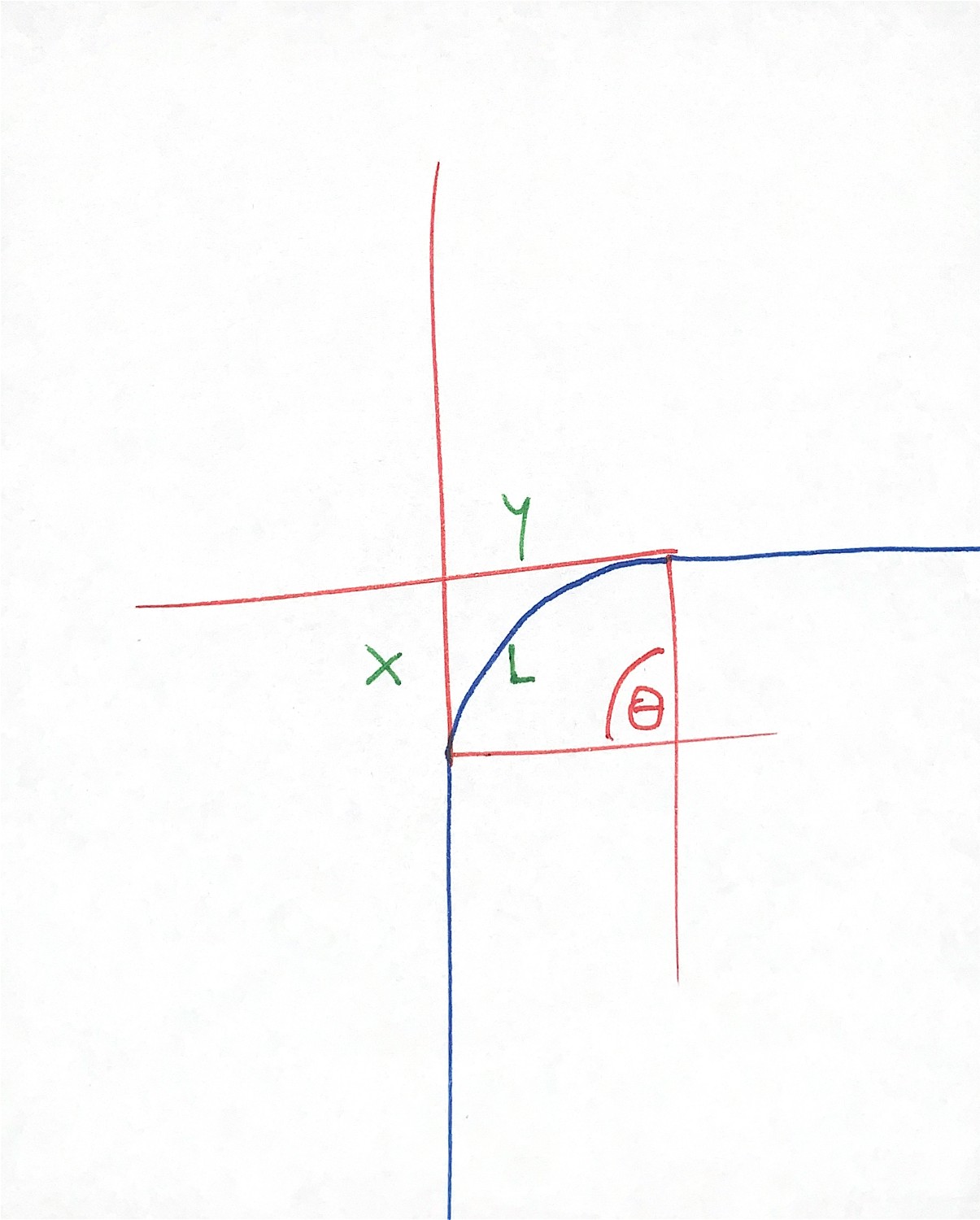 จากรูปถ้ารู้ X (เมตร) Y (เมตร) และ L (ความยาว เมตร) จะหาองศายังไงครับ