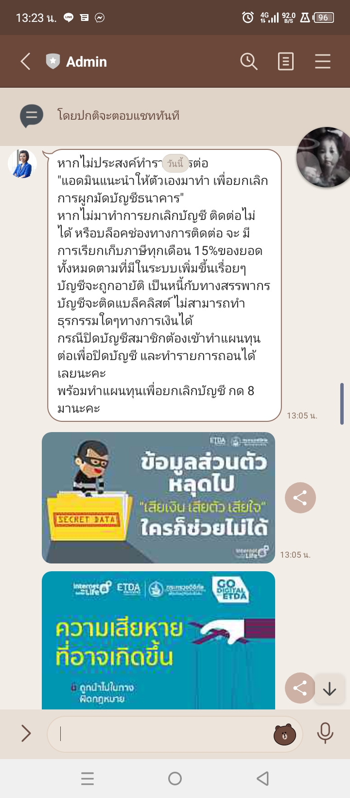 แล้วเราโอนเงินให้แอดมิน50บาทแล้วเขาก็พาทำรายการเหมือนที่เราอธิบายกลัวโดนแฮงข้อมูลค่ะมันจะเป็นอะไรมั้ยคะ