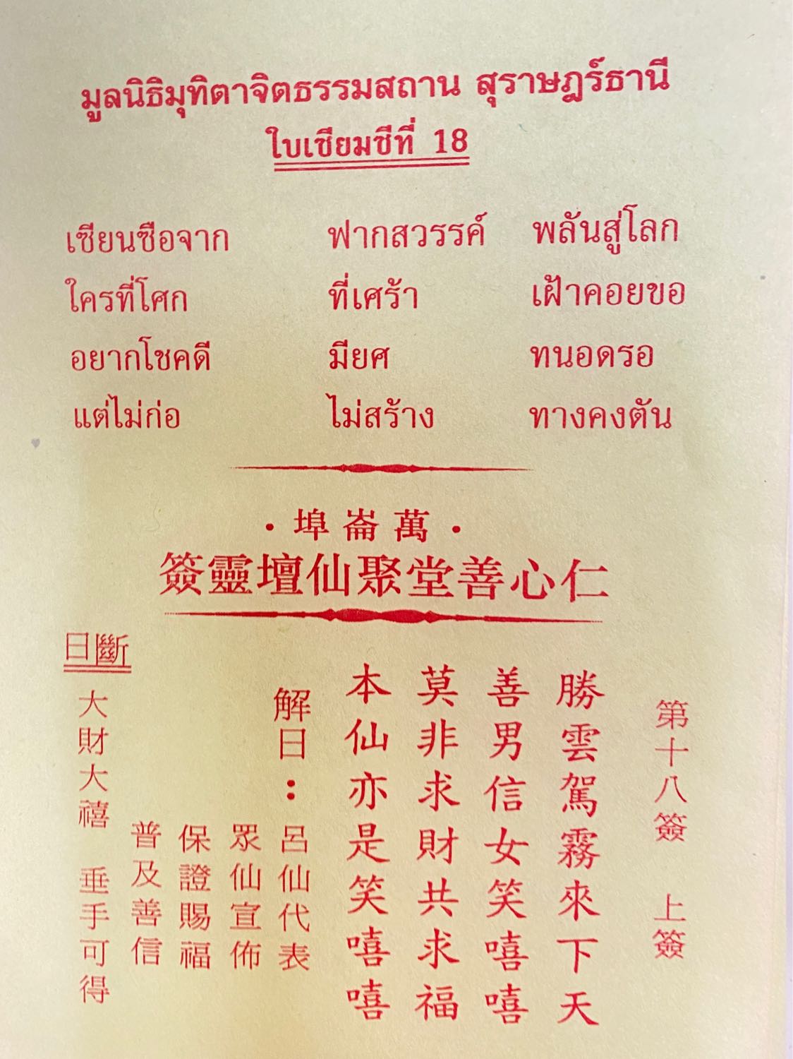 แปลใบเซี่ยนซี่ เลข18 ให้หน่อยได้มั้ยคะ