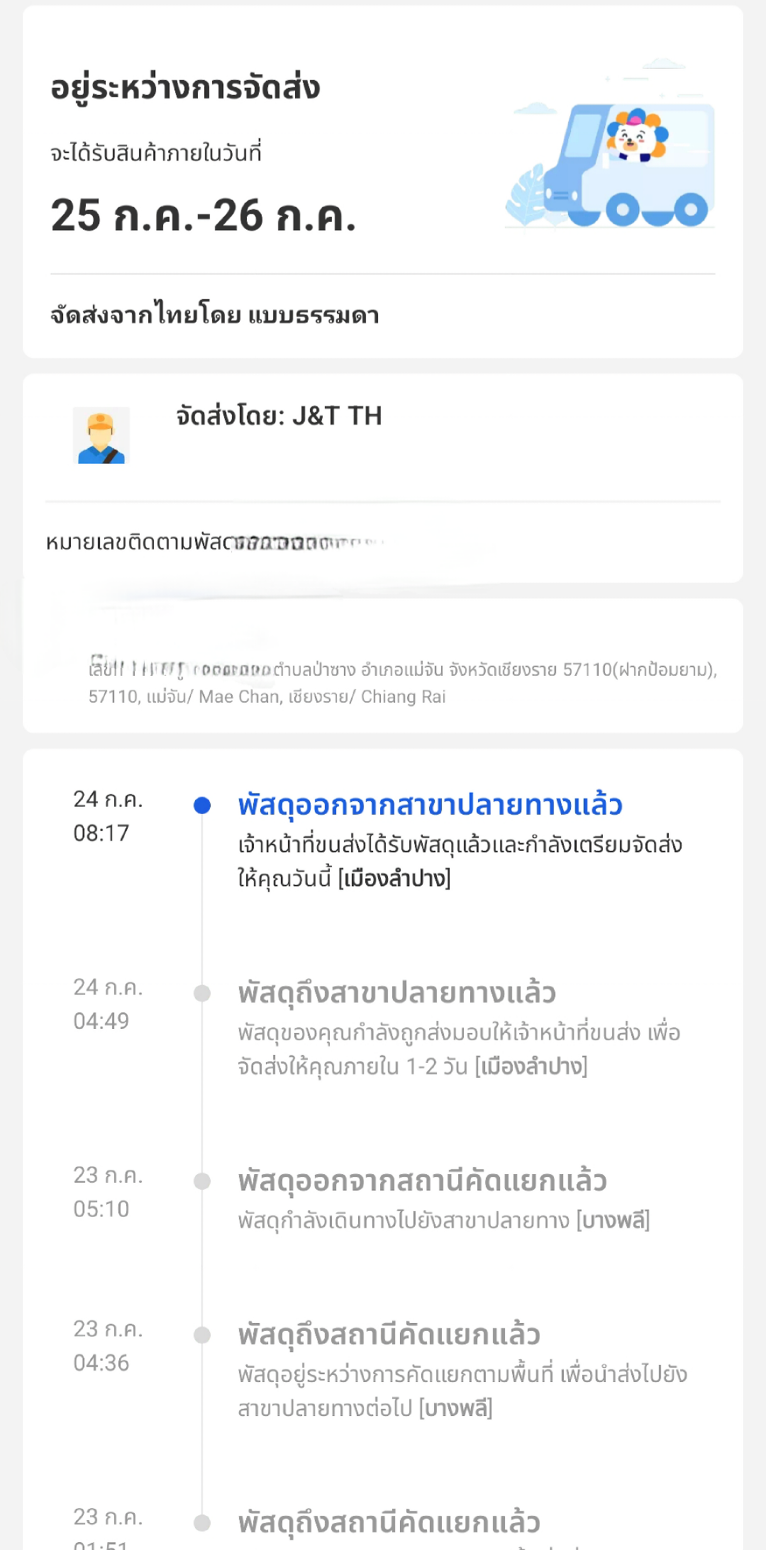 สอบถามครับของจะส่งถึงวันนี้ไหมครับ ขนส่ง j&t