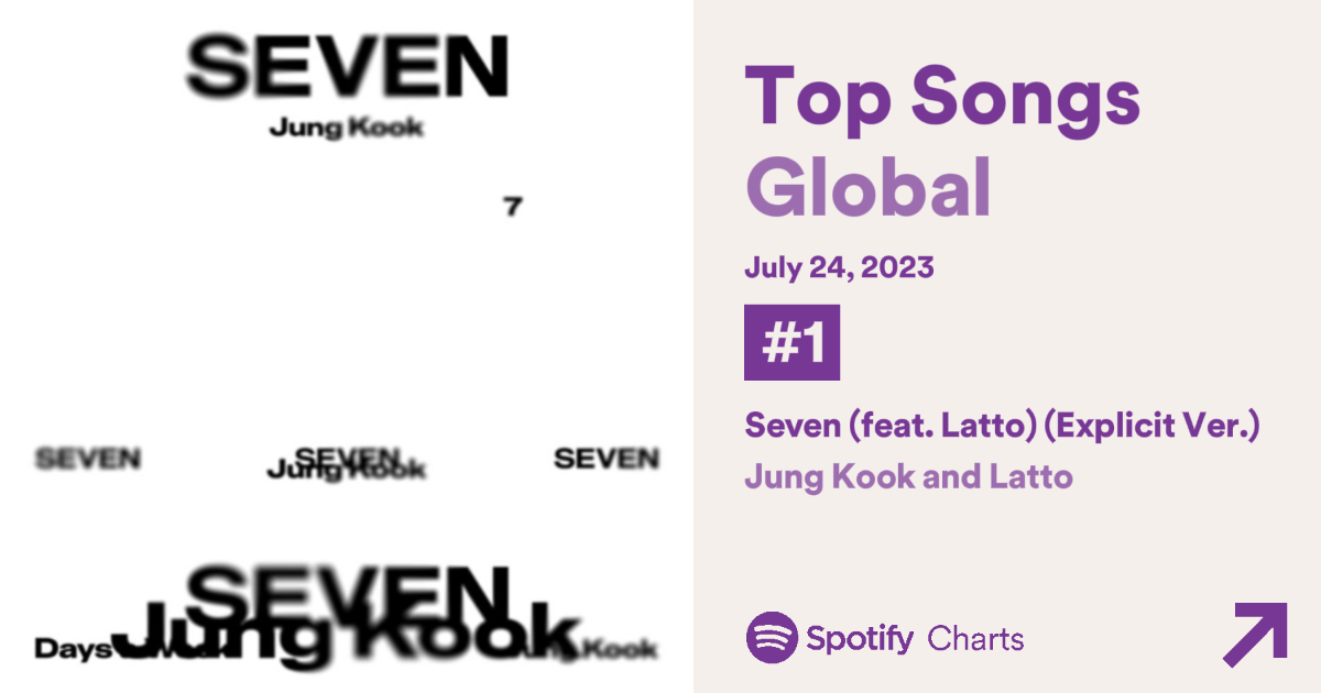 Jung Kook 'Seven (feat. Latto)' ครองอันดับ #1 บนชาร์ต Spotify Global 11 วันติด นานที่สุดในประวัติศาสตร์ของศิลปินเอเชีย
