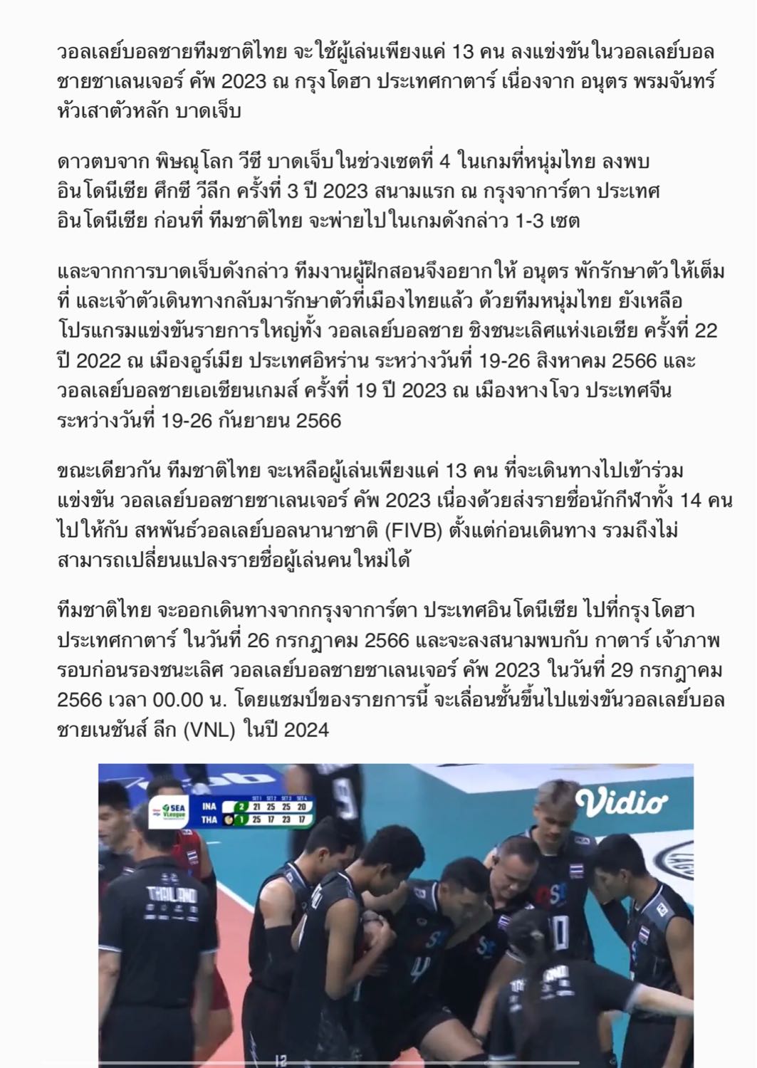 ส่ง อนุตร กลับรักษาตัว ใช้ผู้เล่น 13 คน ลงแข่งขันในศึกชาเลนเจอร์ คัพ ที่กาตาร์