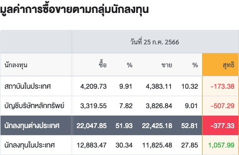 Sinthorn Summary 25/7/2566 : ต่างชาติขายสุทธิ -377.33 ลบ.