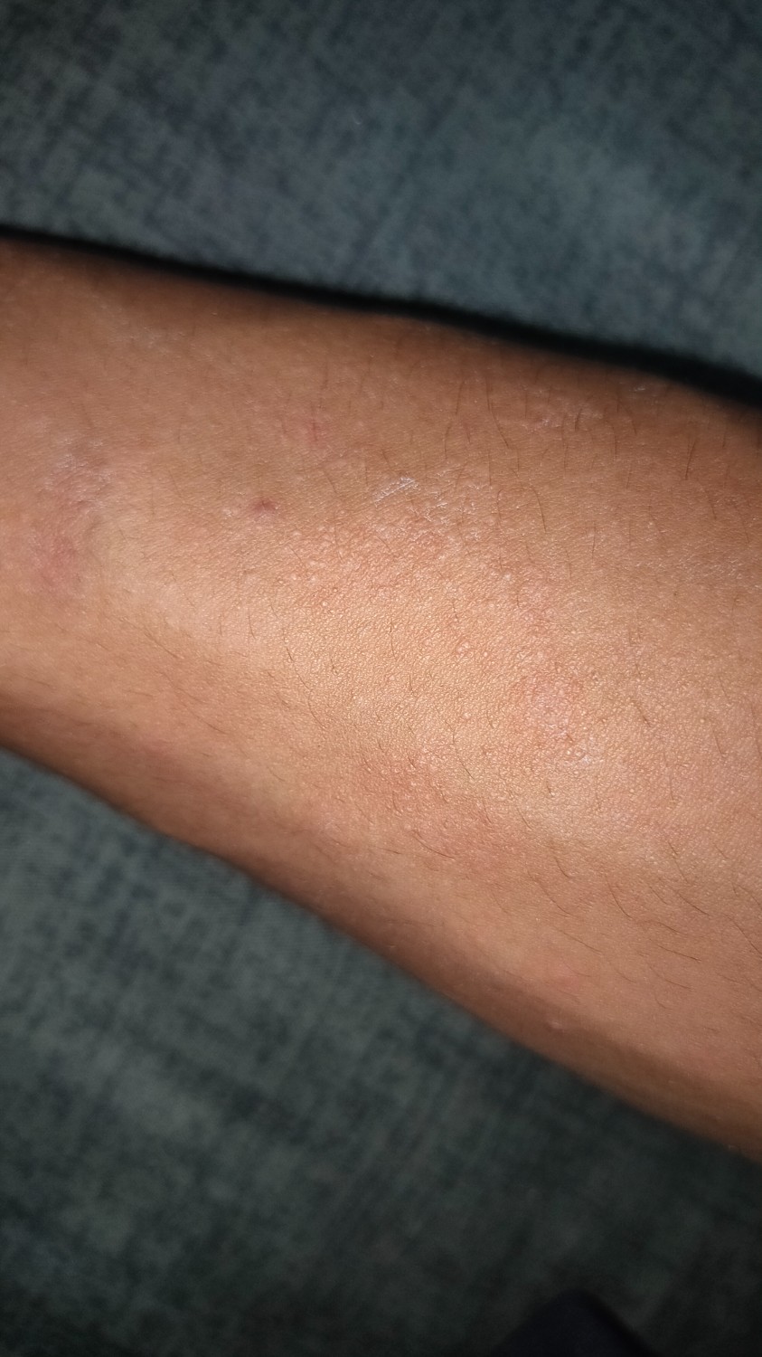 คือมันเป็นตุ่มๆเม็ดเล็กๆ แล้วก็คันๆค่ะ แต่ว่าอีกข้างนึงขึ้นน้อยกว่า แล้วบริเวณที่ขึ้นก็มีแค่บริเวณนี้(หน้าแขน) ช่วงนี้ก็ใช้ทุกอย่างปกติค่ะ แต่ไมาชัวร์ว่าแพ้หรือว่าเป็นอะไร เพราะส่วนของขาไม่มีขึ้นค่ะ