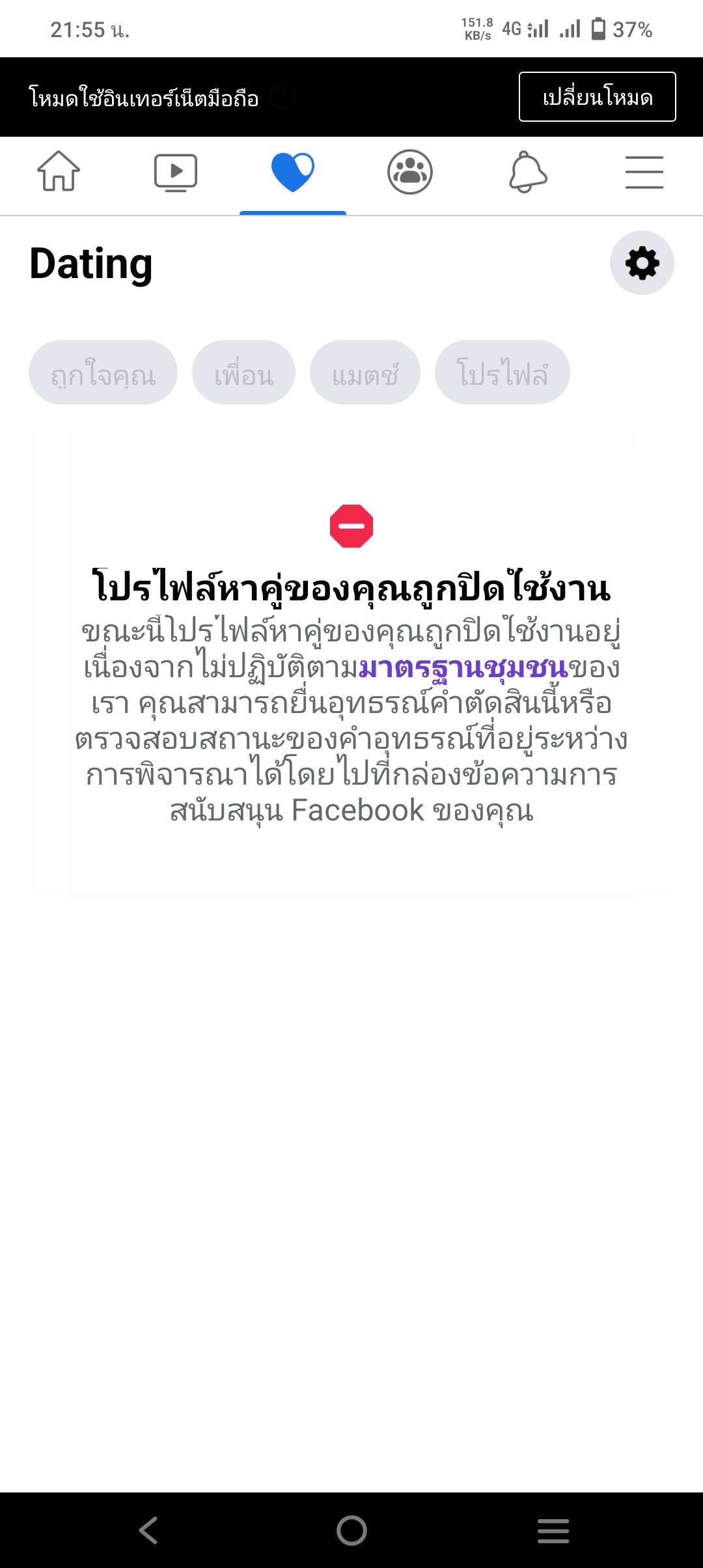 บัญชี facebook ถูกระงับ