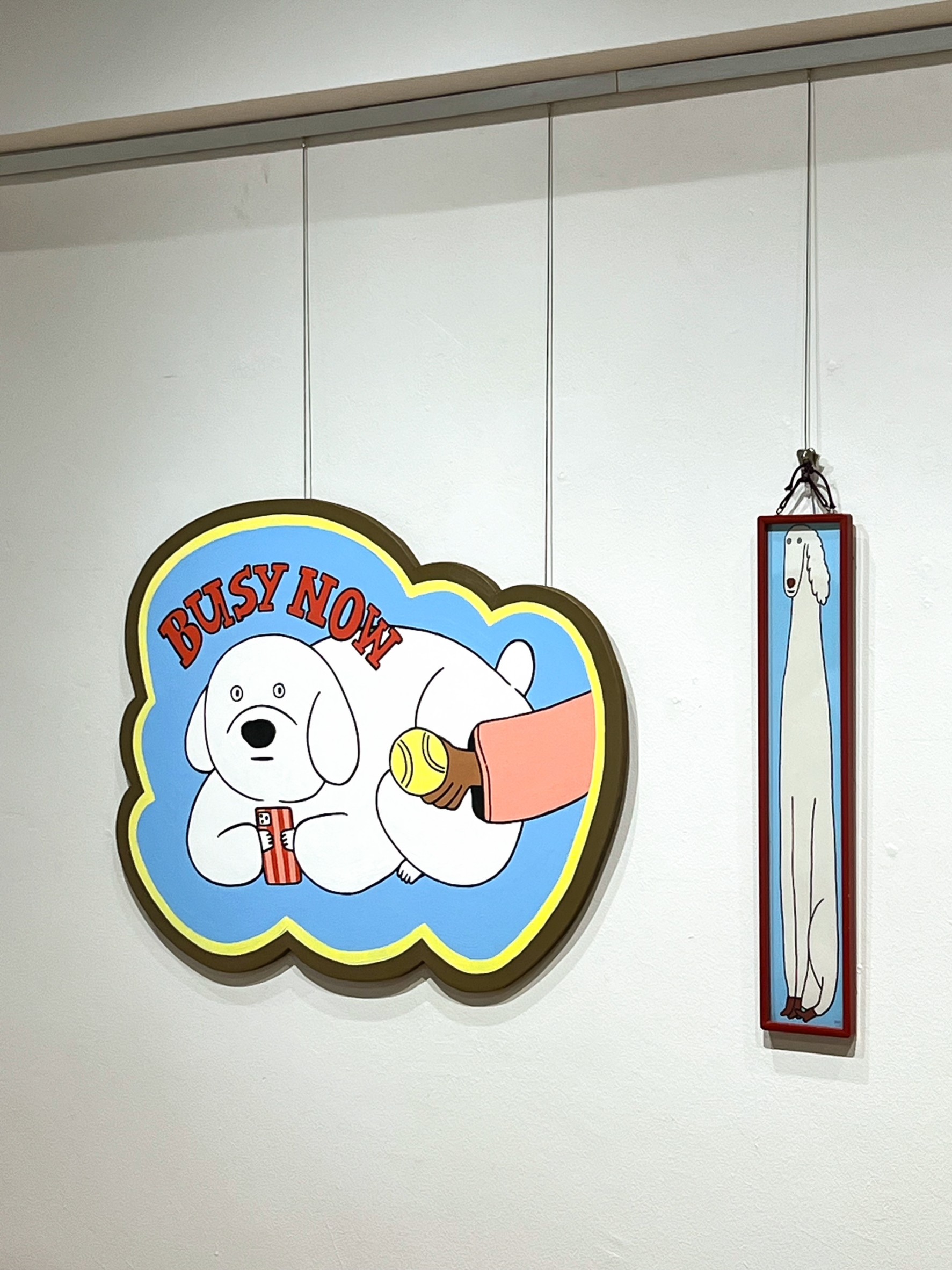แถมล่าสุดเค้าได้นำเอาเรื่องราวของเจ้าหมาๆ ทั้งพฤติกรรมต่างๆ ความน่ารัก ความทะเล้น ท่าทีตลกๆ และgagกวนๆ กว่า 30 ตัว!! หยิบยกมาเล่าผ่านภาพวาดสีสันสดใสนี้ จนได้จัดนิทรรศการผลงานของตัวเองขึ้นเป็นครั้งแรก! ที่ KICH gallery ย่านเพลินจิต แบบนี้แม่หมาอย่างเราจะพลาดได้ไงงง🧡😍